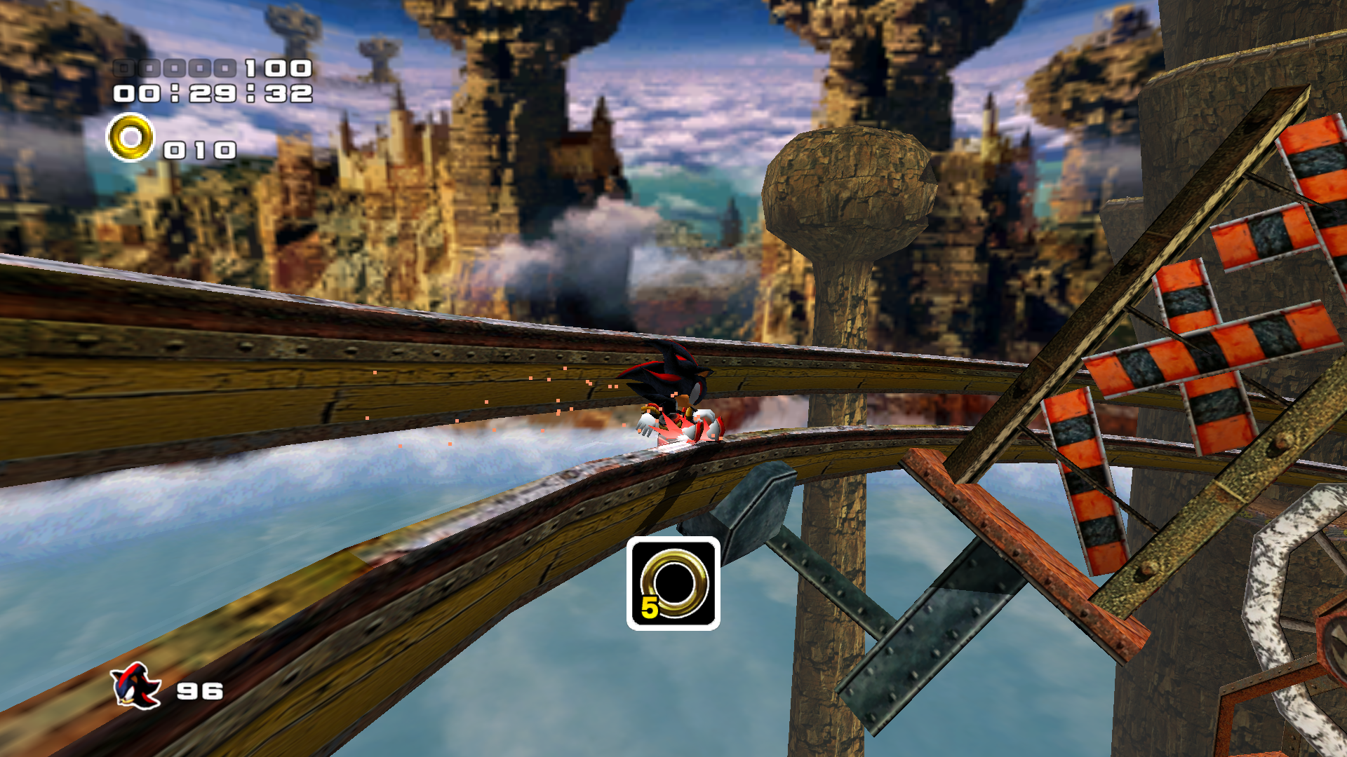 Shadow begins to pursue the enemy from the rails that litter the canyon.